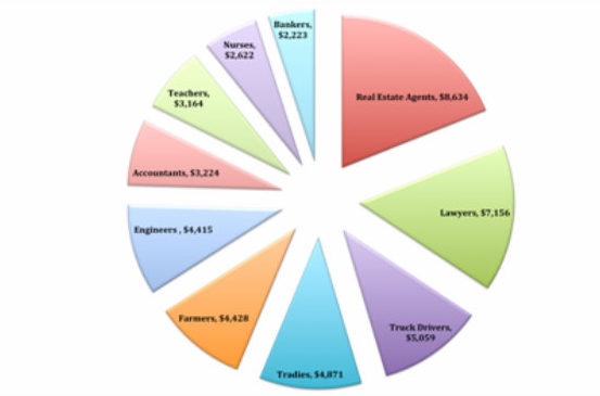 The top 10 is packed in on a tight race to the top with figures between $2,000-8,000 in expense claims. Industries of the like include Truck Drivers, Trades People, Lawyers, Farmers and Teachers. Most of these are simply down to the costs of travel and further education. Does this say something about the rising costs of transport and education in Australia?